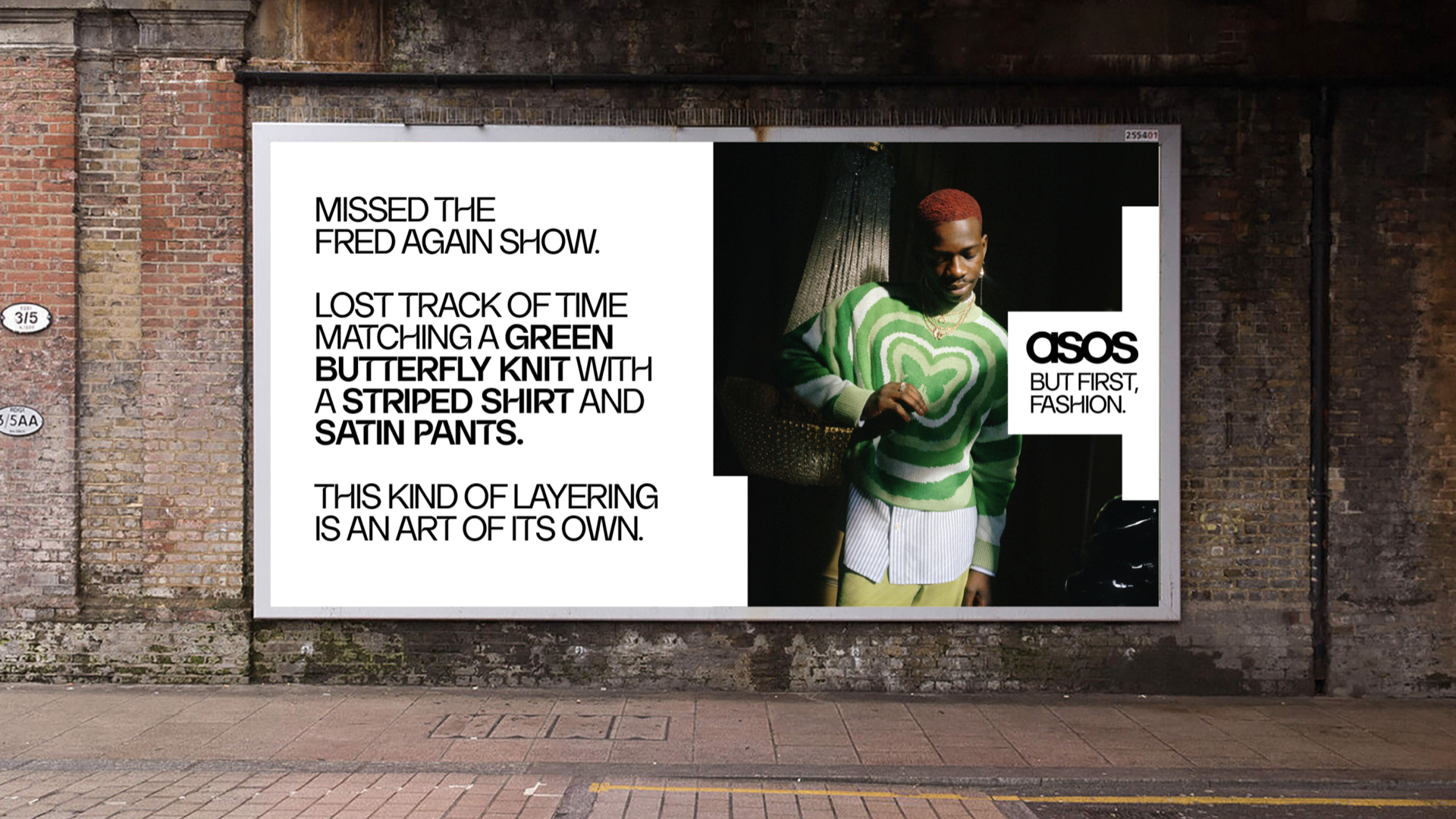 The visual approach used cool stylised people, in lifestyle and surban settings, where their outfit took centre stage. For OOH, we took a long copy approach, allowing us to really explore the attitude of an ASOS customer and how much fashion is their life.